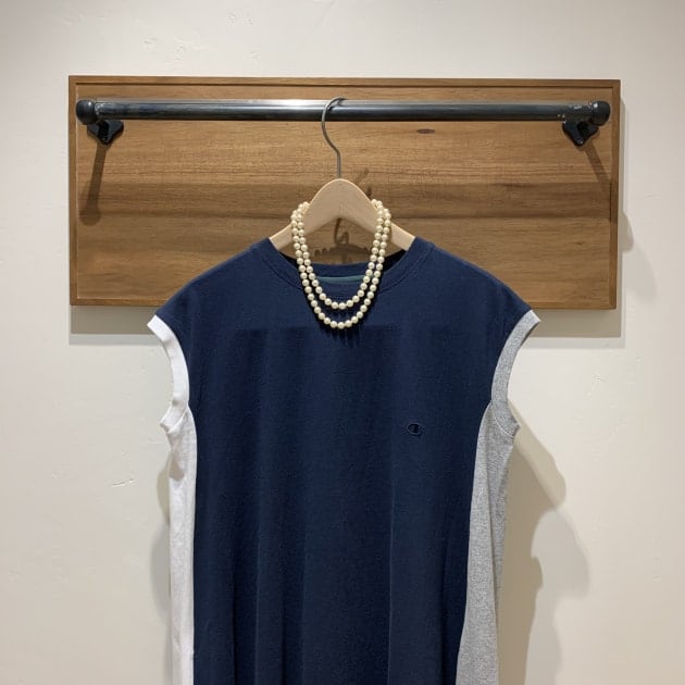 ゆったりとしたノースリーブワンピースに、