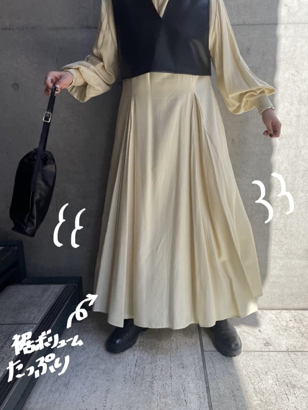 なんとも言えないボリュームのスカートは、歩くたびひらひらします♪女子力up!!