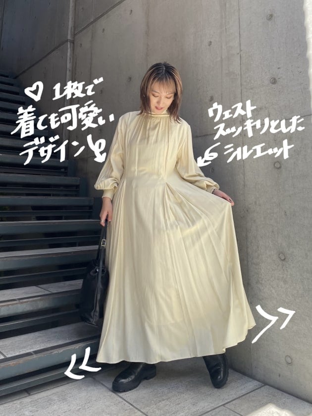 スカートにボリュームがあり、にウェストは絞られてます!一枚でもオシャレに着られるワンピース♪