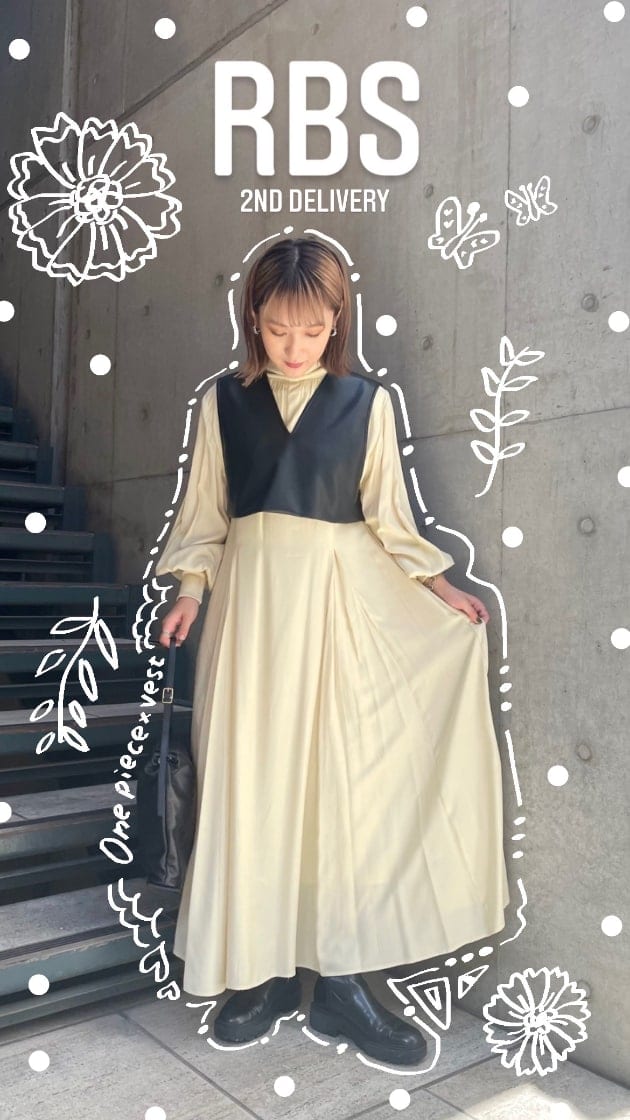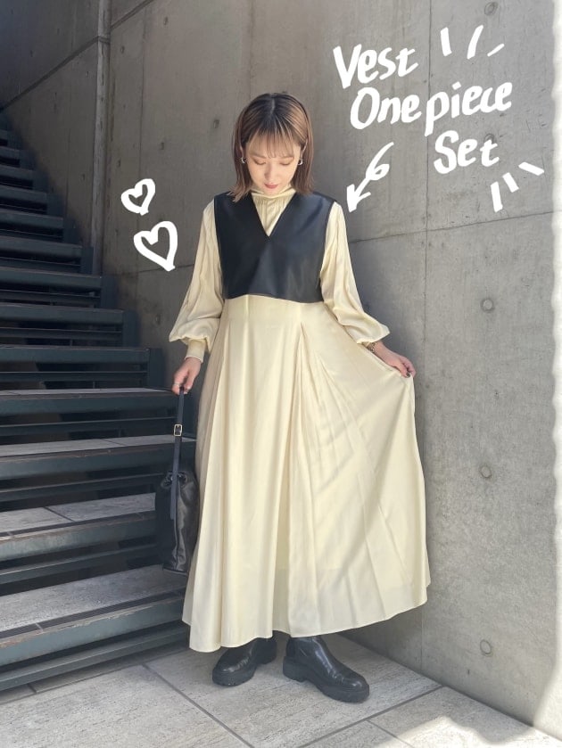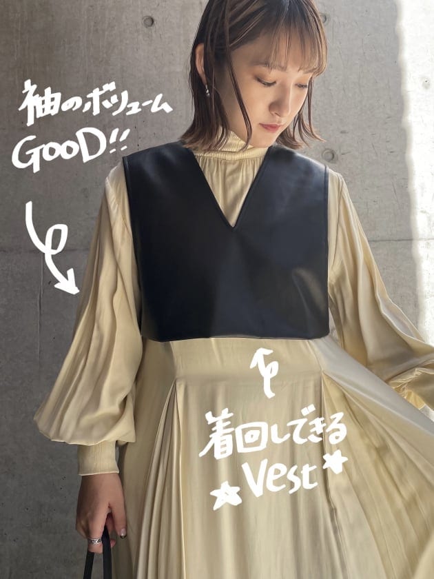 ふわっとした袖がかわいい!!ベストはトレンド感のあるフェイクレザーを使用!