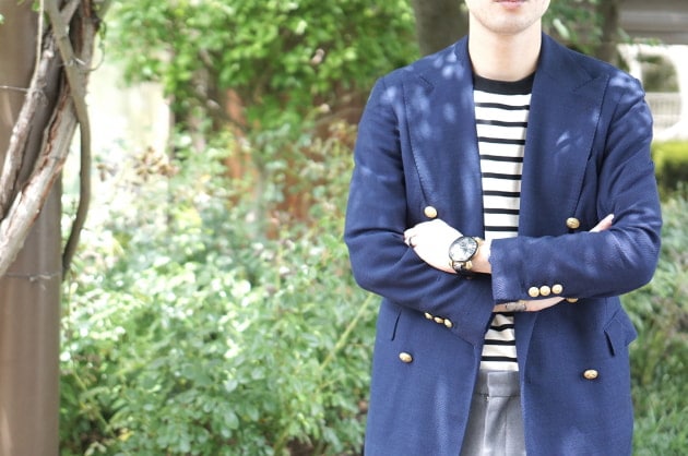 そんな時はボーダーTシャツにブレザーくらいのスタイリングがピッタリです。