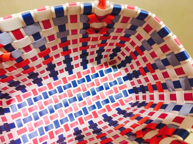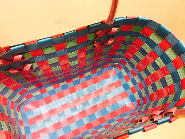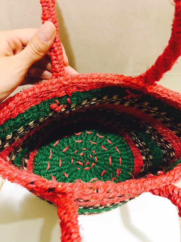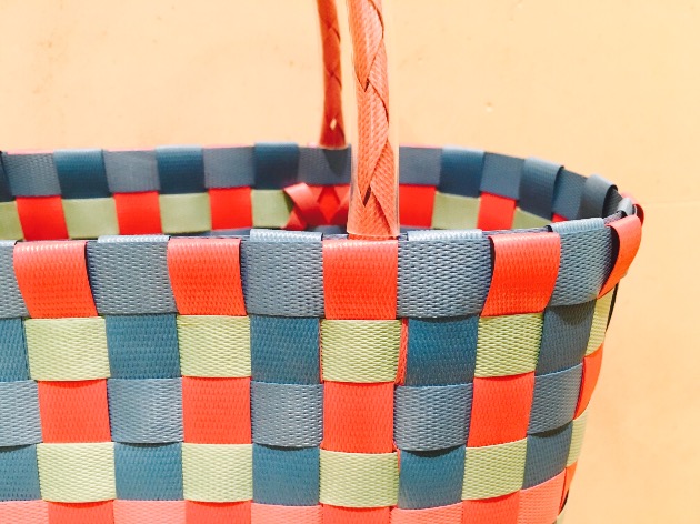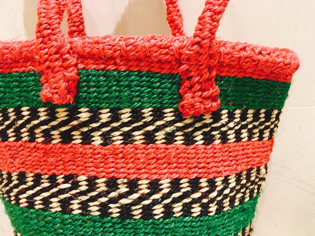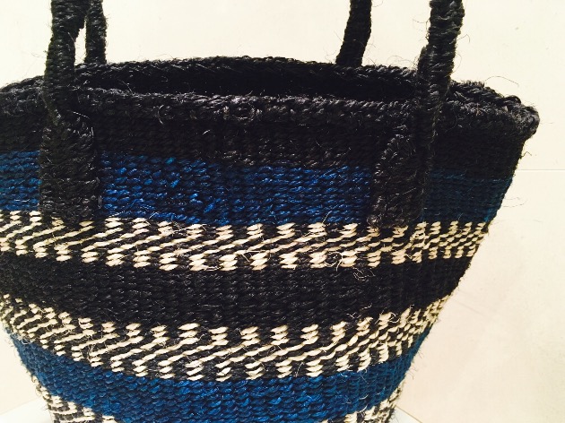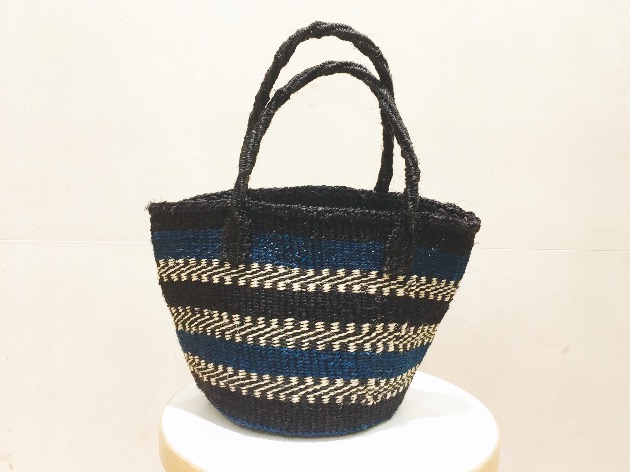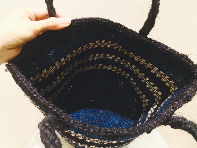 麻の格子状の編み込みが特徴的なバケットバッグ。