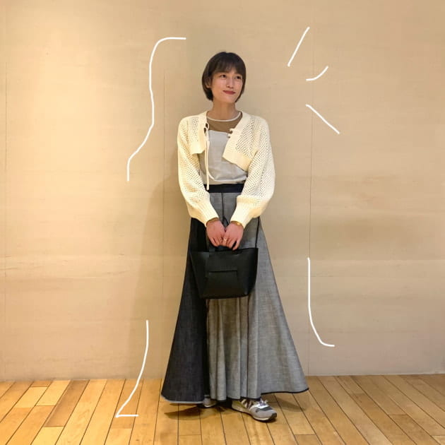 バックとシューズを体合わせて締まりのあるスタイルに♡ちなみに、ジャケット、スカートバック全てTHANKFUL CAMPAIGN対象商品です!