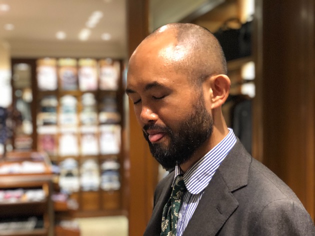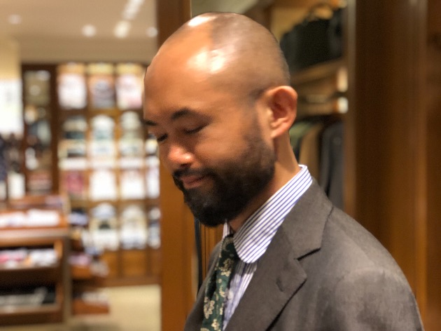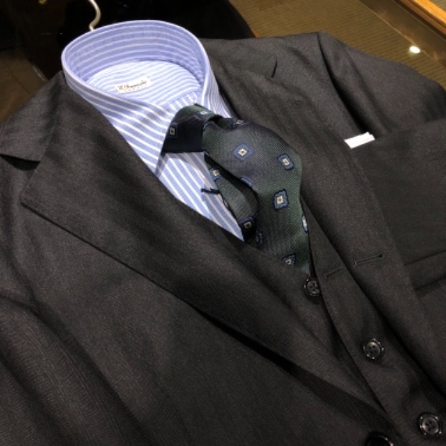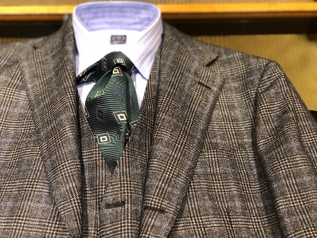 グリーン系のネクタイも馴染みますね。