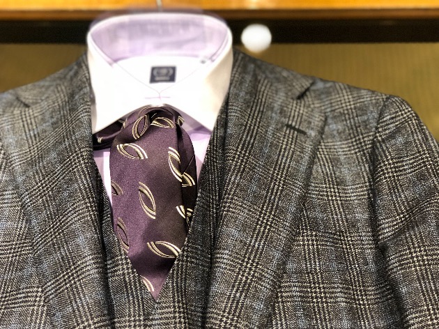 明るいネクタイや、柄物ネクタイなどを合わせても面積が抑えられて良いですが、ここは