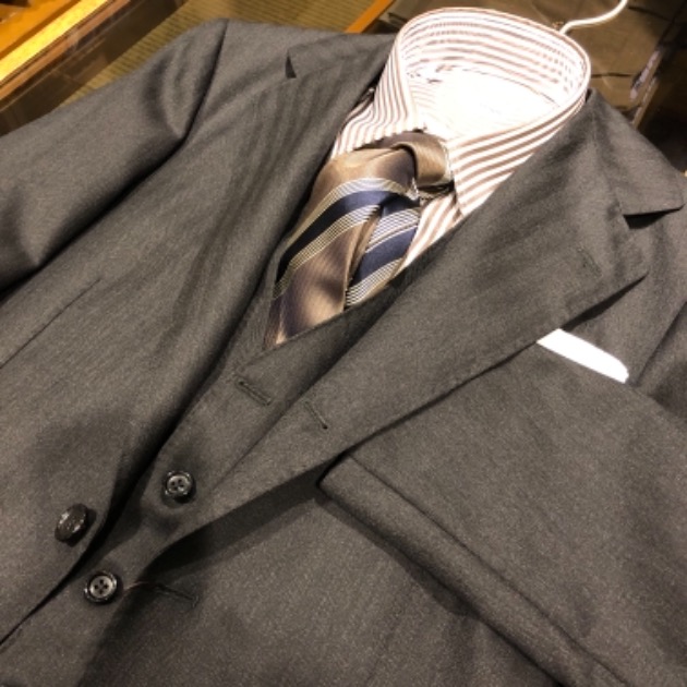 ですね。ダウンジャケットなどのアウター類はまた後々にして、本日はスーツです!