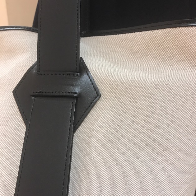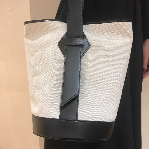 ストロー素材と牛革の異素材の組み合わせが高級感あるデザイン。