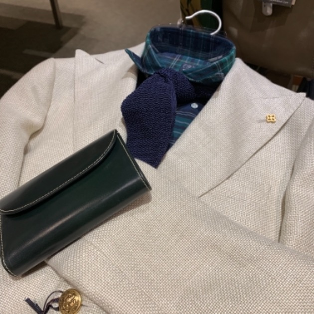 個人的には、ベージュのシャツがポイント。