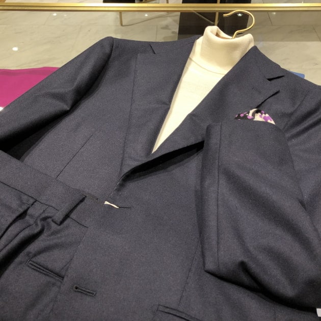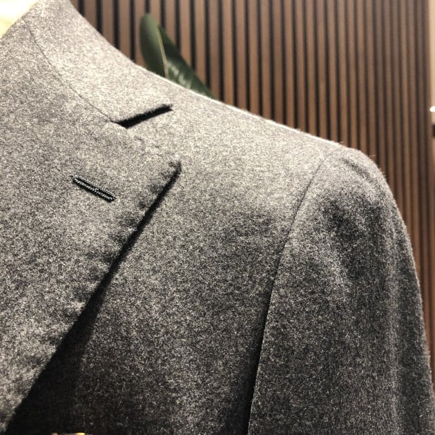 この生地は、ウールに少しのカシミヤとシルクも入っており、