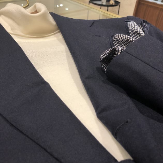 非常に細い柔らかい系で織られたウールは、まるでカシミヤのような表情を見せてくれます。