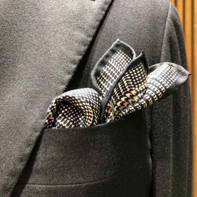 仕上げのチーフは忘れずに。