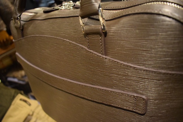 ブラウンスーツにブラウンストライプのシャツ。ペーンを拾ってグリーンのヴィンテージ調タイ。
