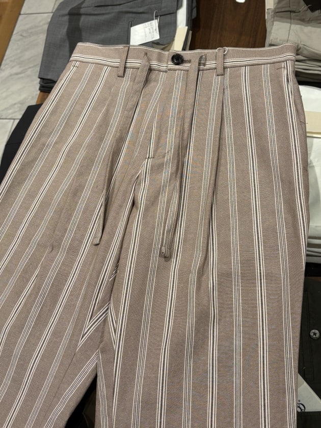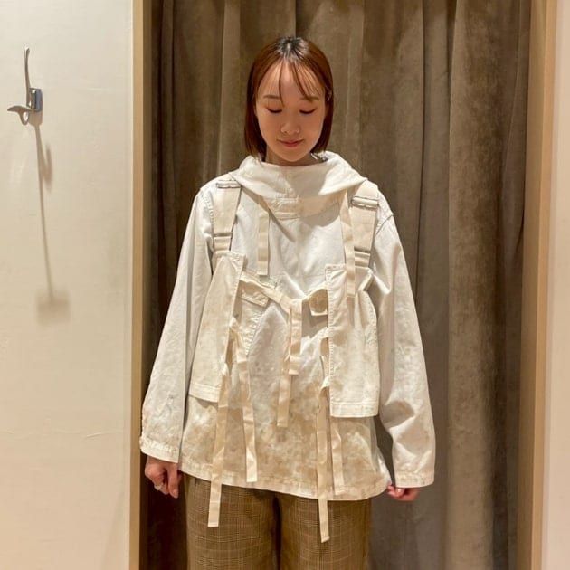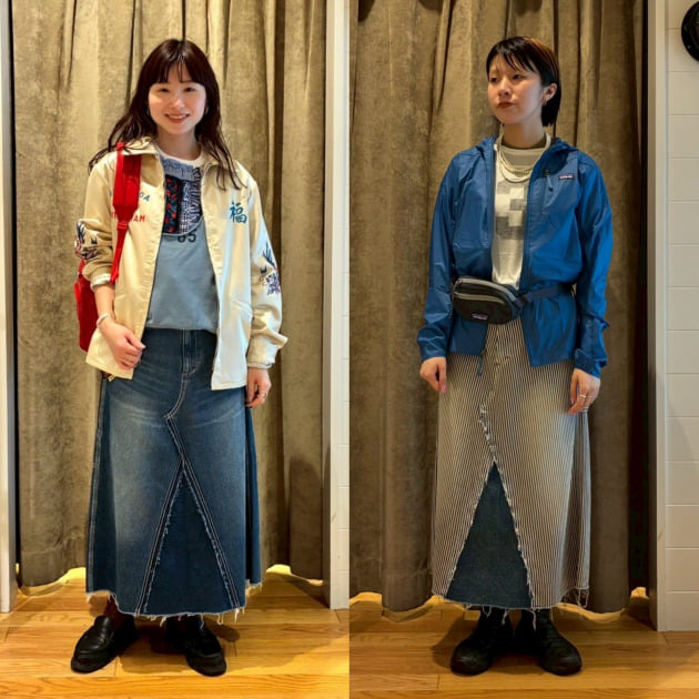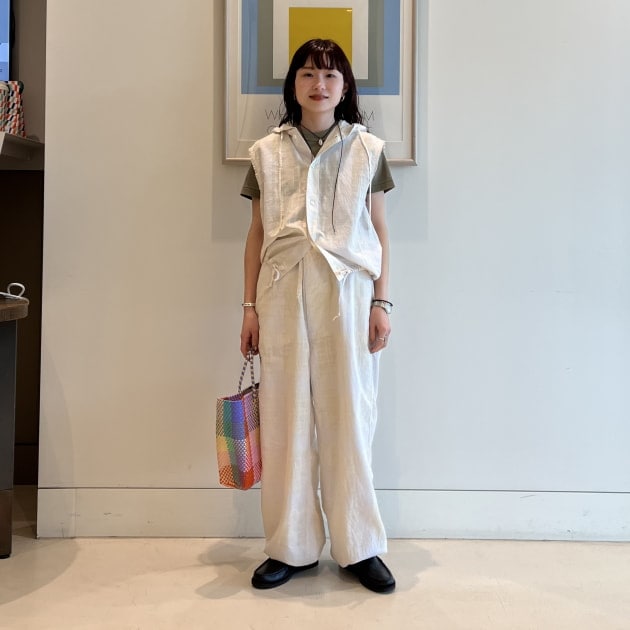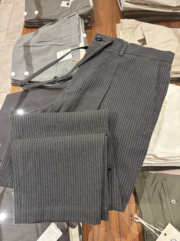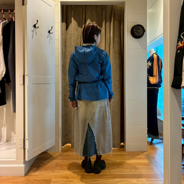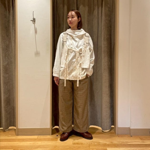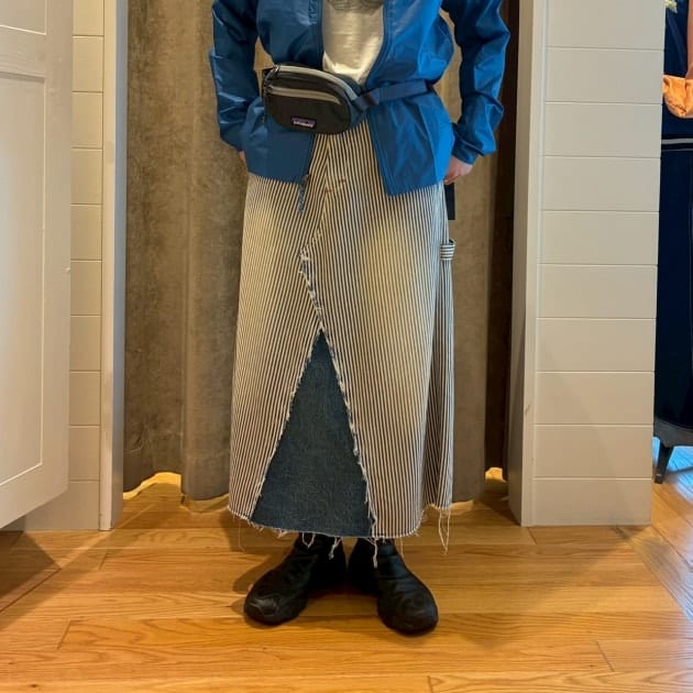 個人的には、コットンスラックスを合わせてスポーティーに。そのようなイメージです。ご参考まで。