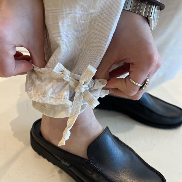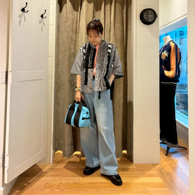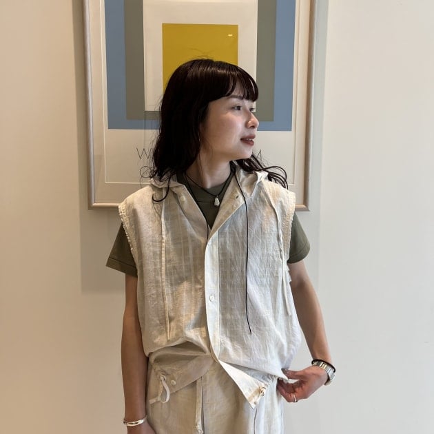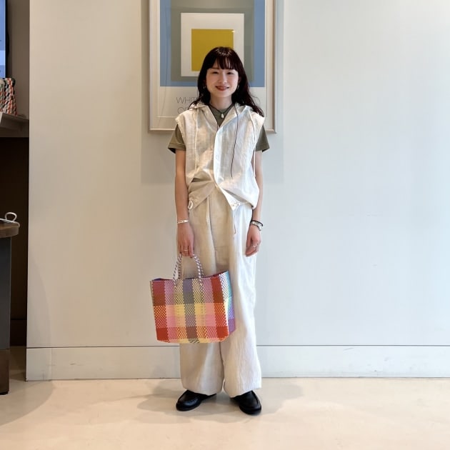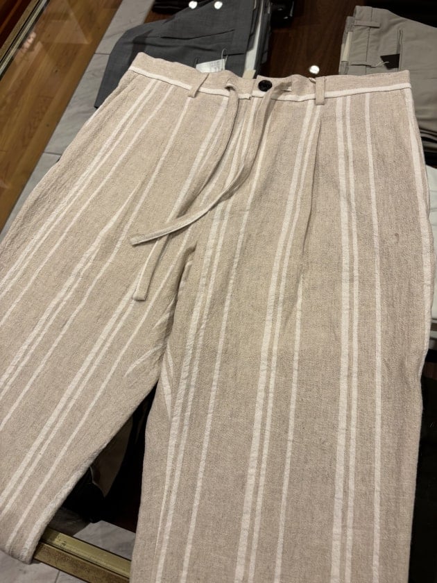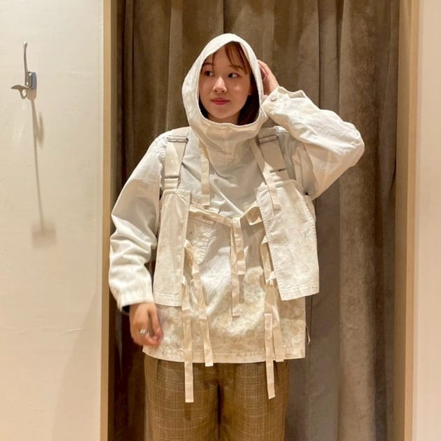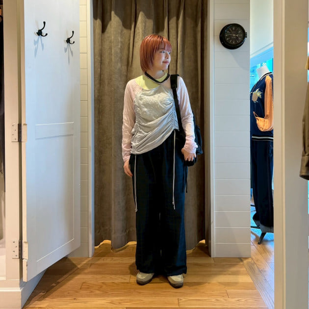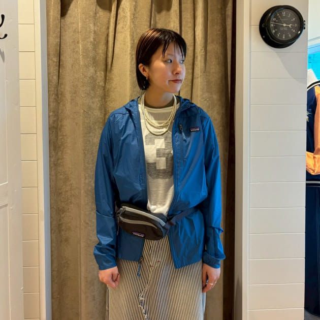 個人的には、コットンスラックスを合わせてスポーティーに。そのようなイメージです。ご参考まで。