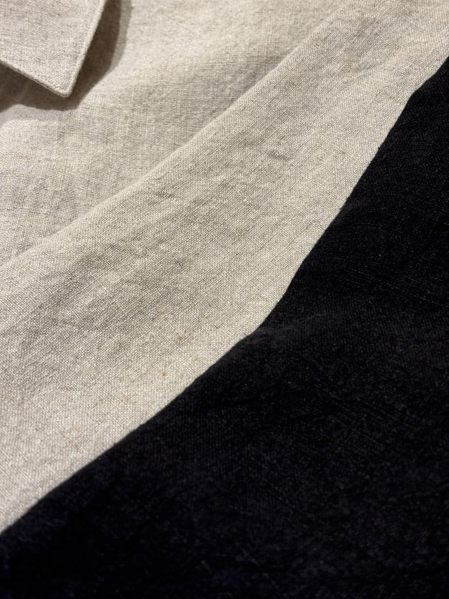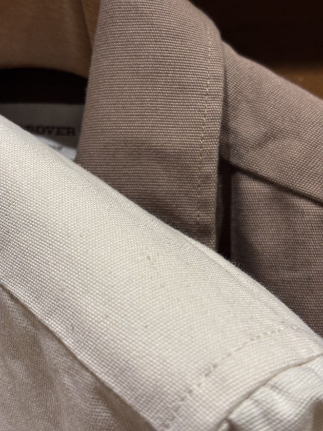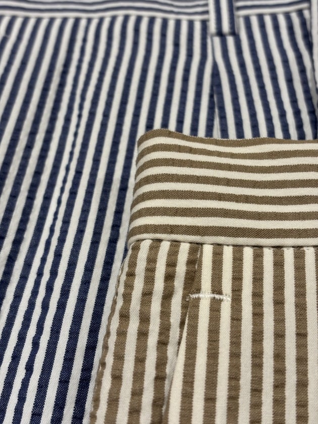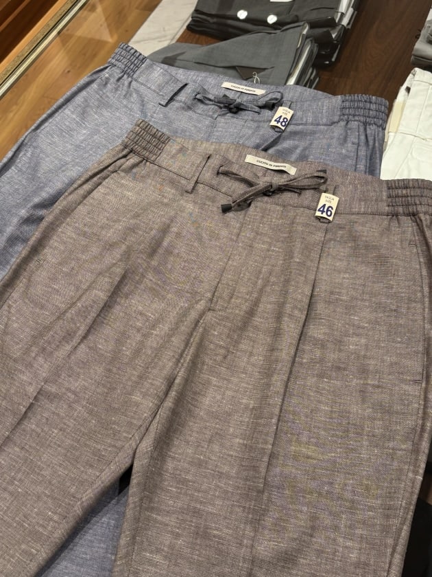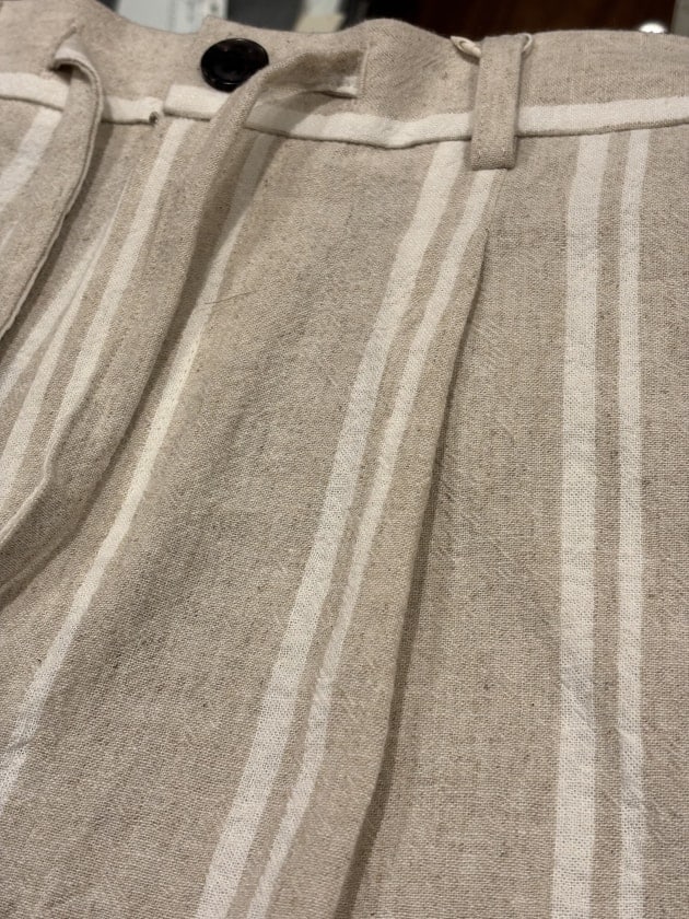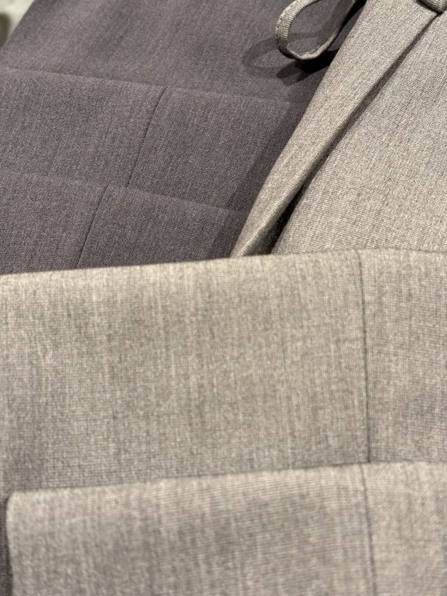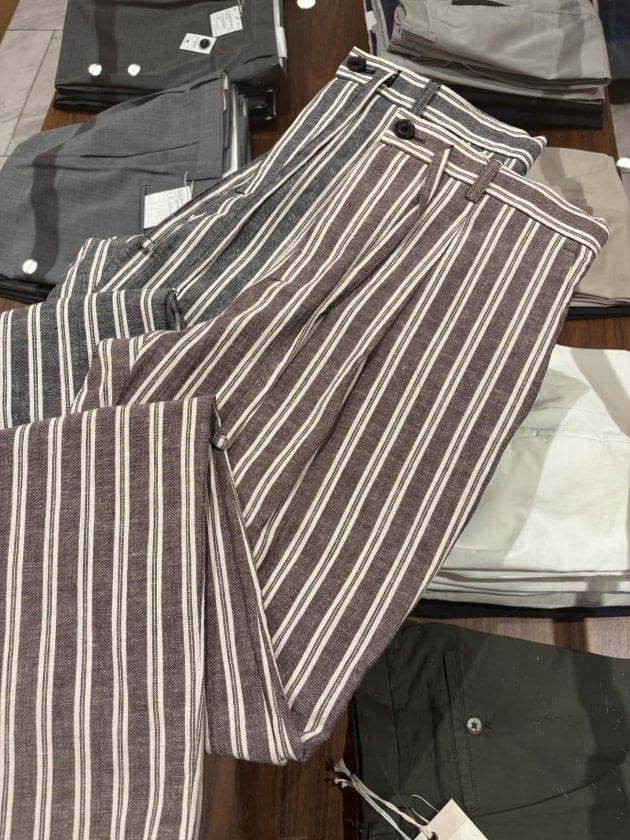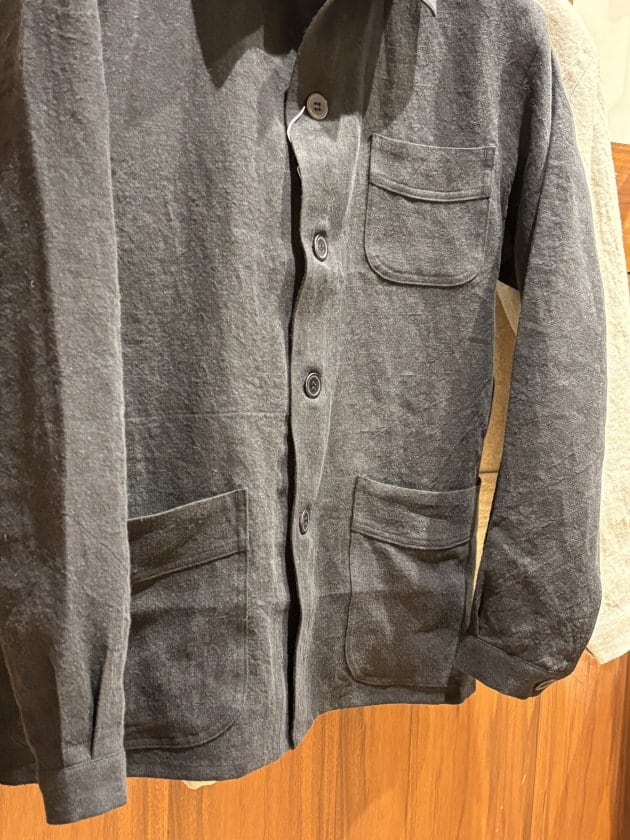 イタリアの生地メーカーLEO MASTERのウール55%リネン45%生地を採用しています。若干浅い発色のNAVYカラーで、春夏シーズンらしい素材感。次の画像↓が実際の色合いに近い写りです。