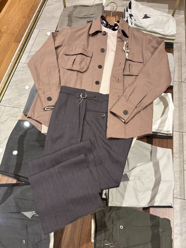 インナーにポロシャツ等を合わせてドレスダウンはもちろんですが、普通にタイドアップして頂いても全く問題ありません。
