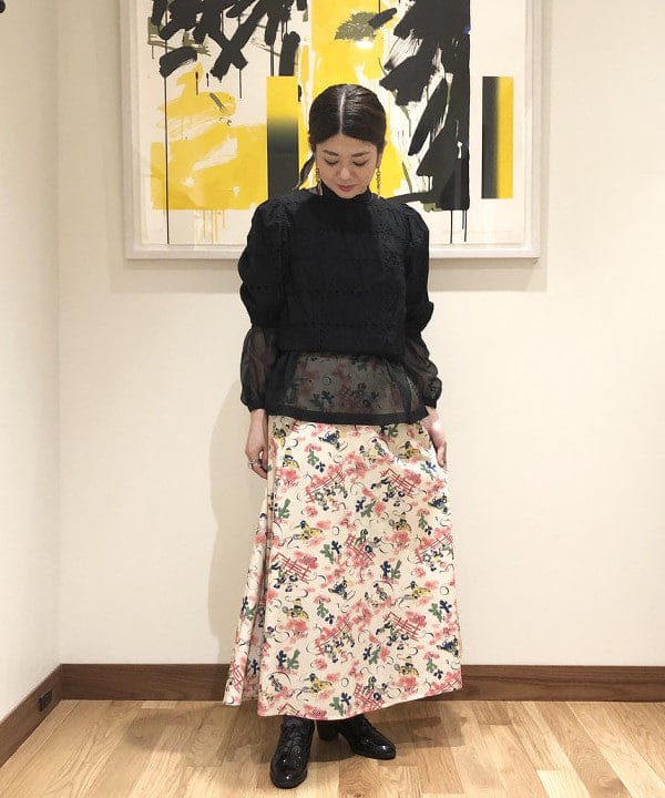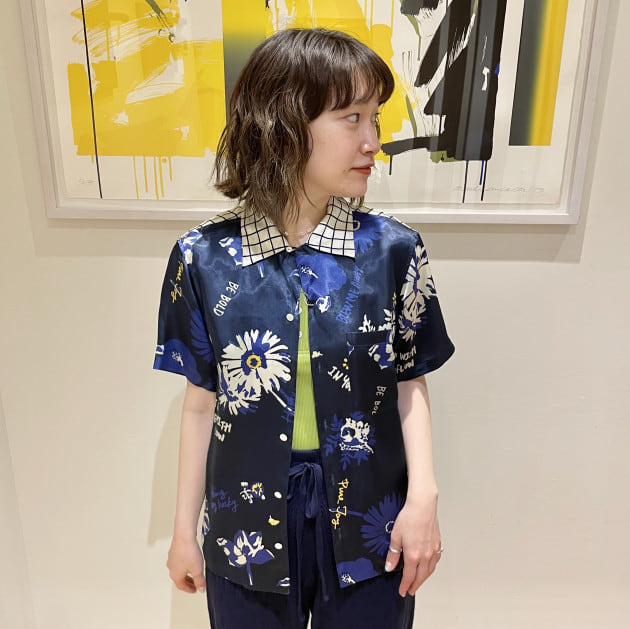 中には襟付きのブラウスを合わせて