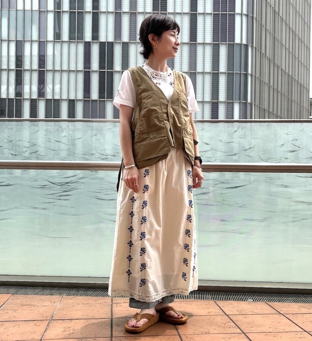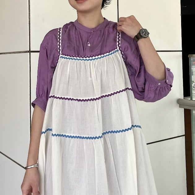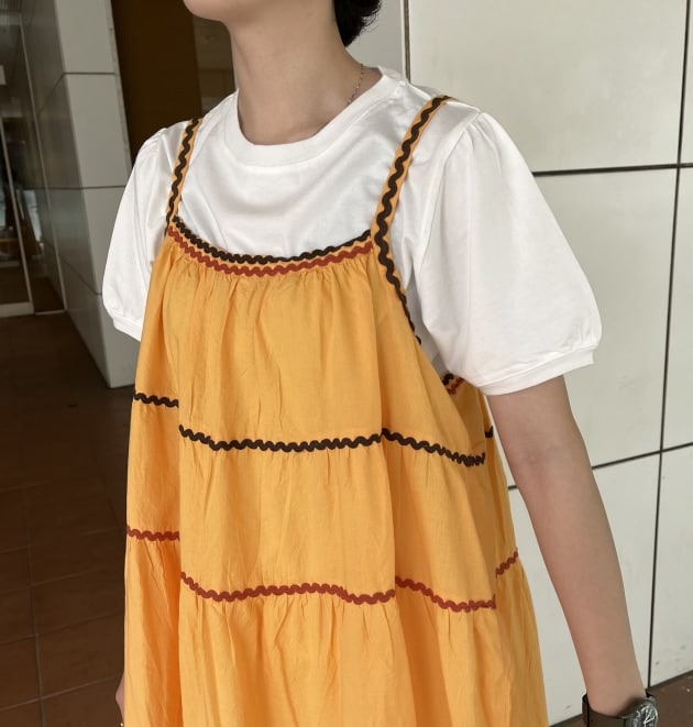 首周りがシンプル&裾のボリュームがおとなしめ。