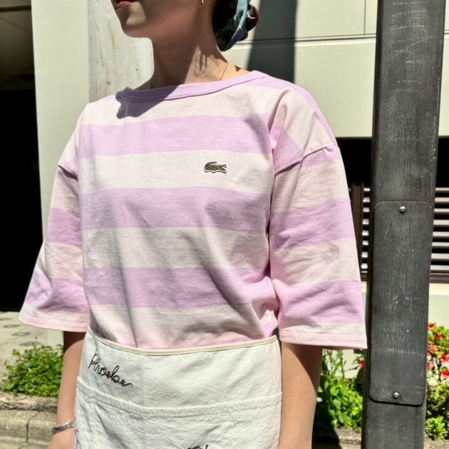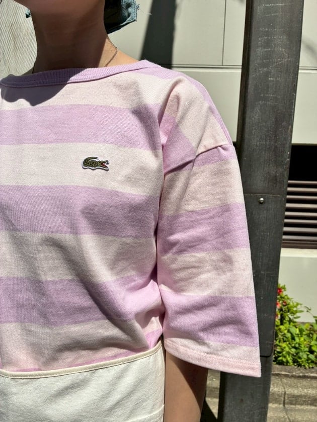 〈LACOSTE〉別注ボーダーTシャツのピンク/サイズ36を着用!