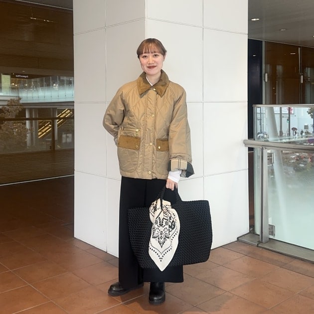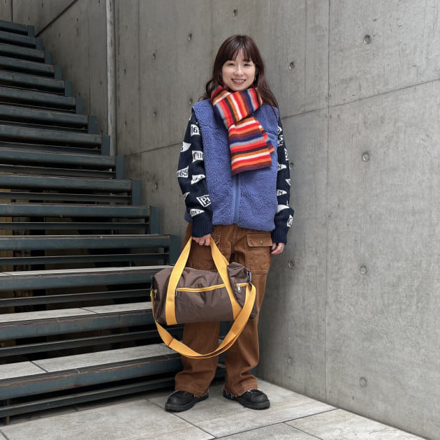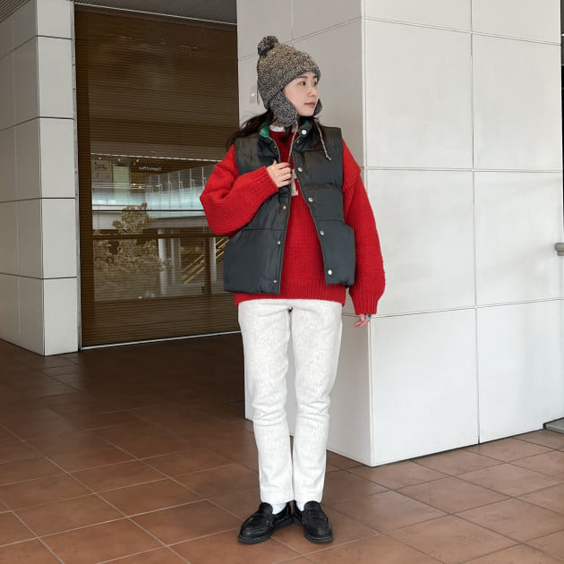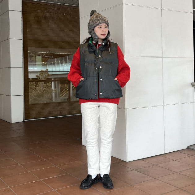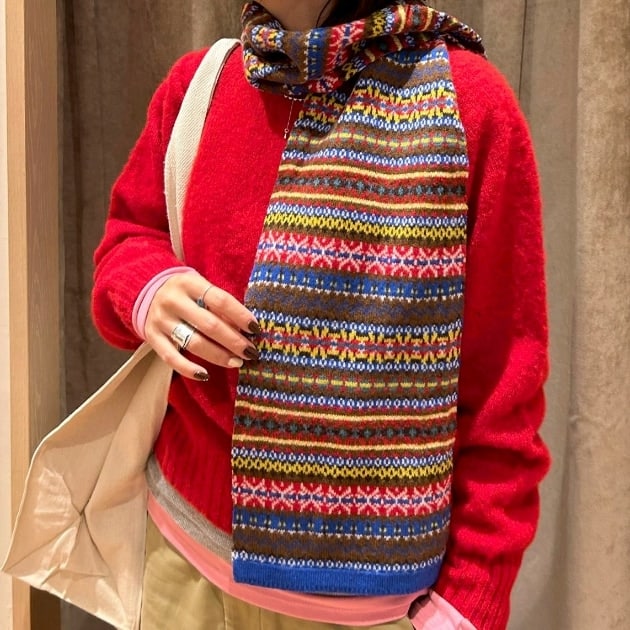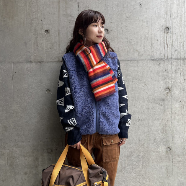 マフラーで柄をプラスするとホリデー感が漂って可愛いですね♪