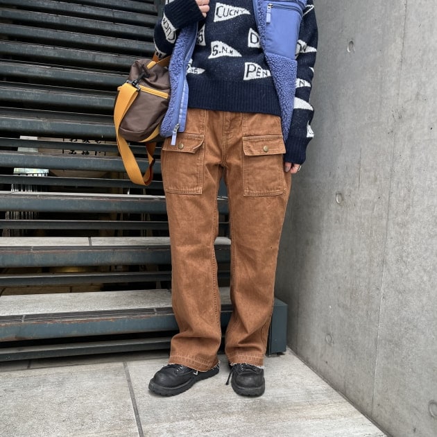ボトムスはシンプルにコーデュロイのパンツを合わせました。ガンクラブチェックコートにローファーで、トラッドさもプラスしてます