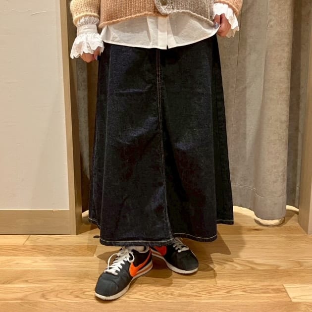 デニムに重ねたスカートのサイズは2の上のサイズです。