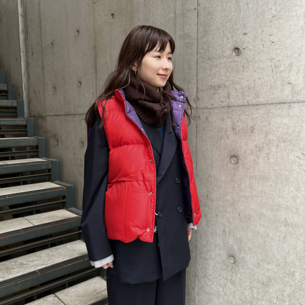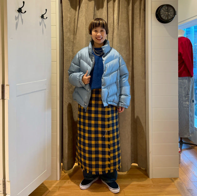 アウターもブルーでリンクさせました。