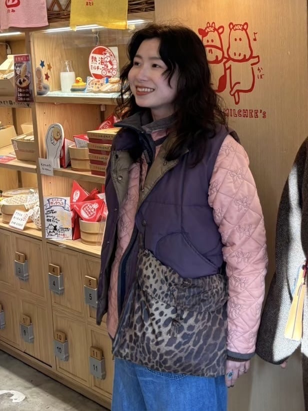 ブラウンをベースに、シューズやスカートにピンクを取り入れ、
