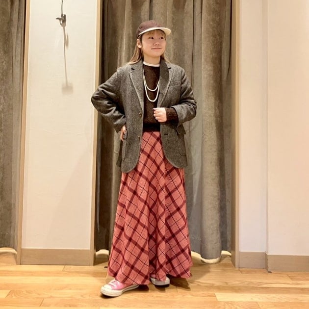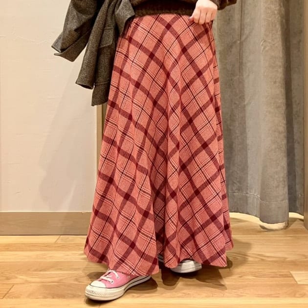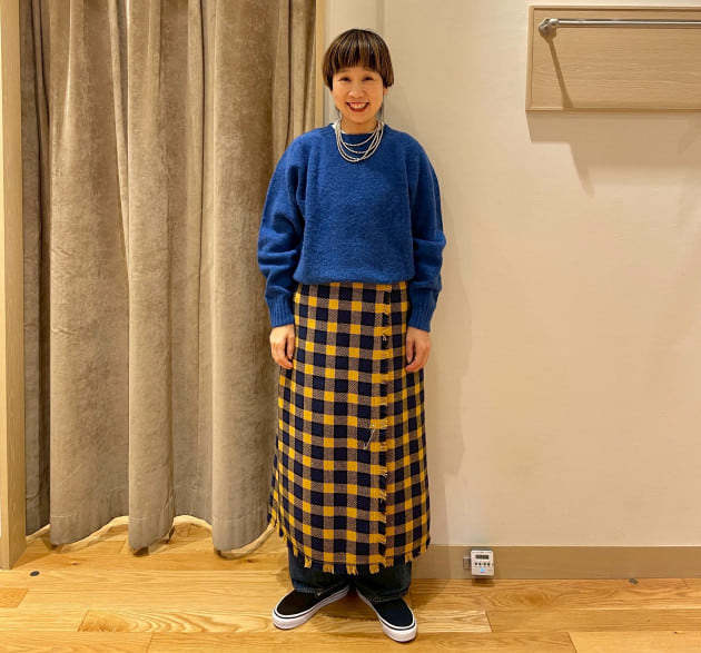 私はニットの色と同じスカートを選びました。