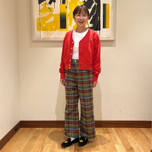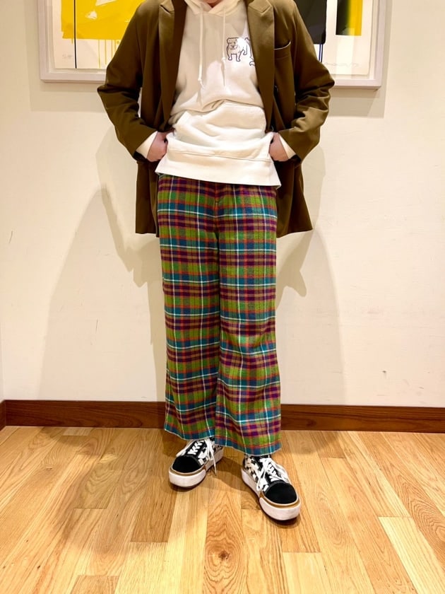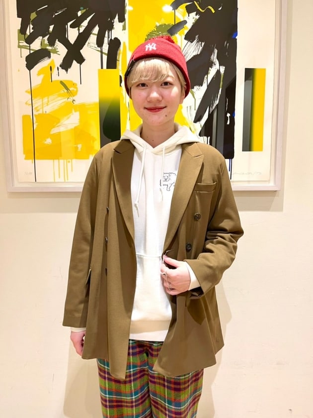 私がマドラスチェックのジャケットとキャップを合わせて派手なトラッドスタイルにしました☺︎