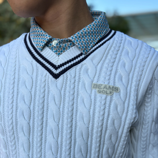 ロングスリーブシャツや薄手ニットの上に羽織って、秋〜冬のラウンドに。