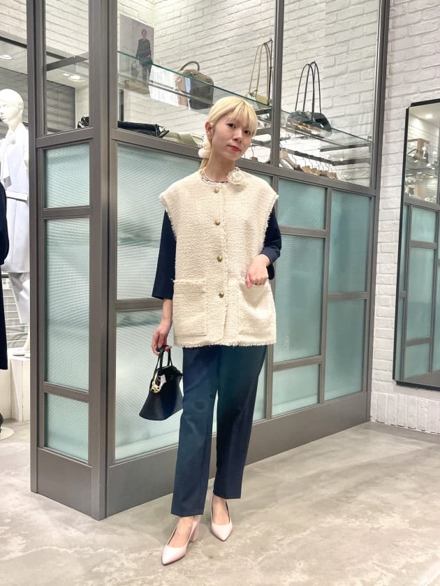 よりセレモニーらしく、華やかなツイード素材のジレをプラス。