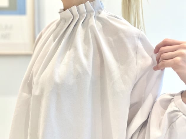 シンプルながらも、首元から広がるドレープが上品でとてもキレイです♪