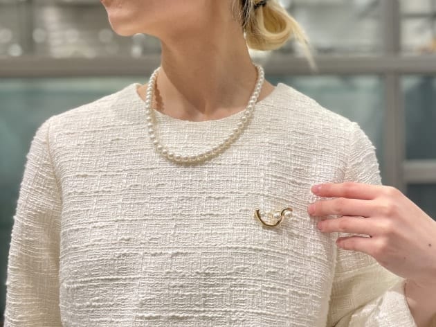 ネックレスやブローチを合わせると、