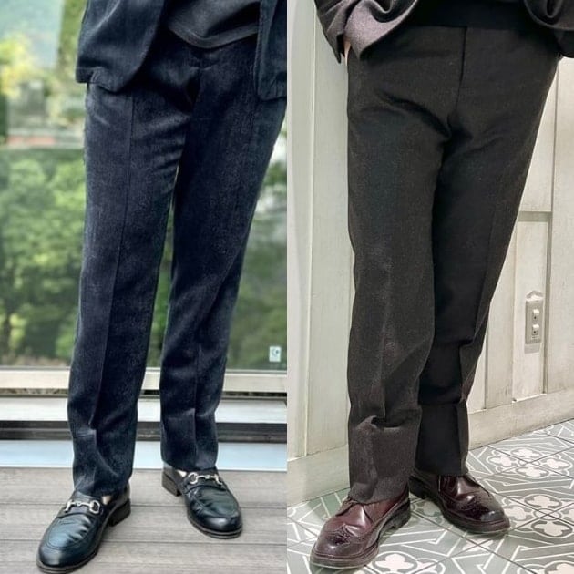 やや細身なシルエット。今季からポケットの仕様がフラップポケットに変更されました。タイドアップもカジュアルもインナーによって印象を変えられます。