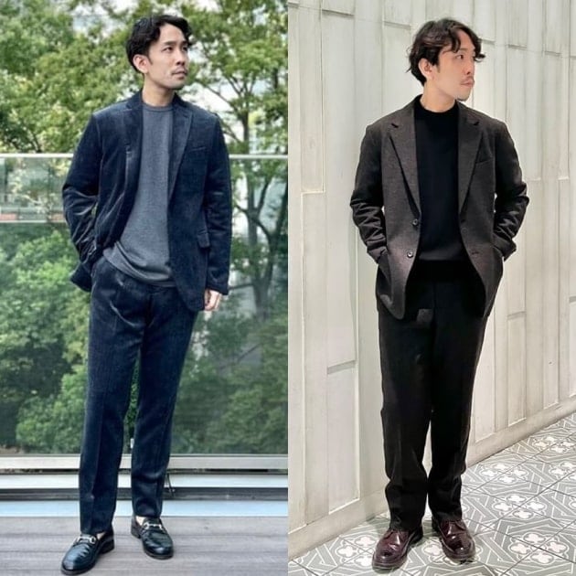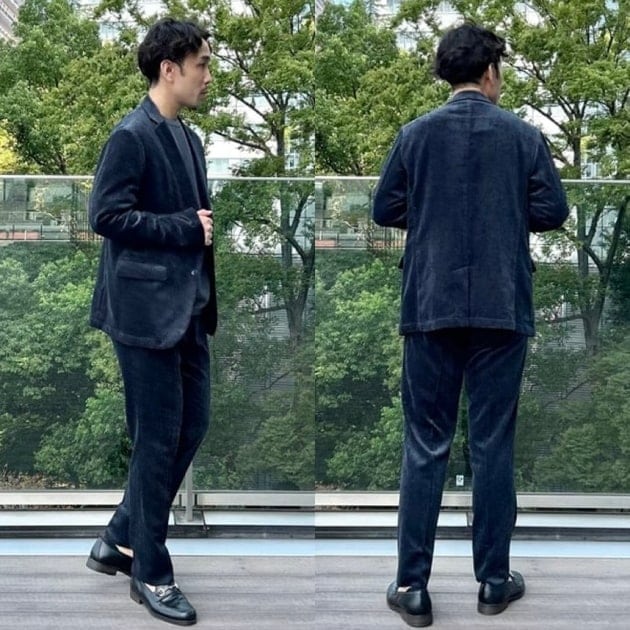 王道のジャケットスタイルから、遊びを効かせたカジュアルなスタイリングも大得意なスタッフです。(→Instagram@machapresso)