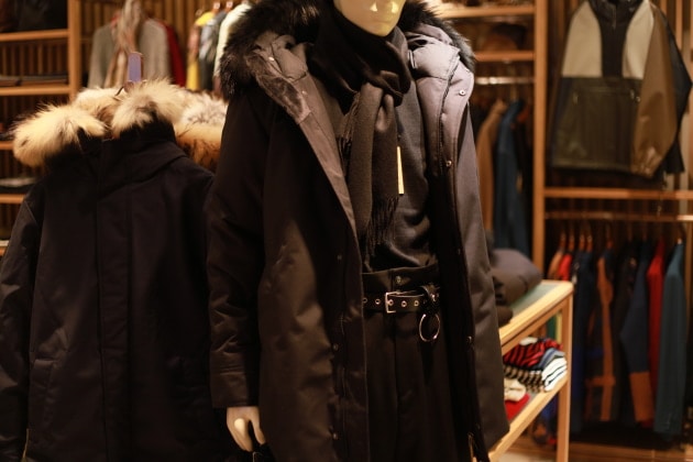 ベーシックなニットに対して、こちらもベーシックな見え方のダウンジャケットを。