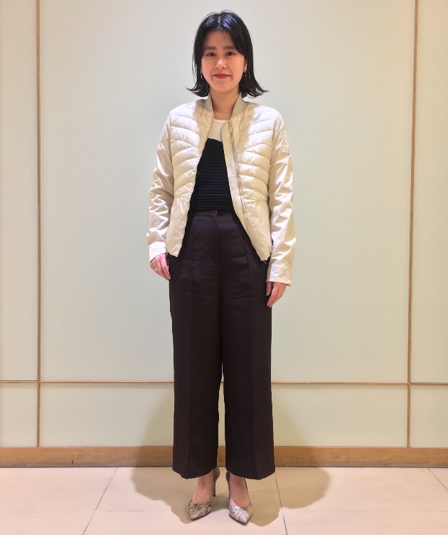 カジュアルかつ綺麗めなダウンジャケットとして私服で着ていただくのもあり。また、シンプルなデザインのため仕事でもありの正に二刀流。