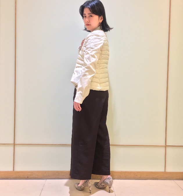 黒だとメリハリが付きすぎてキツい印象のコーディネートに見えてしまいます。
