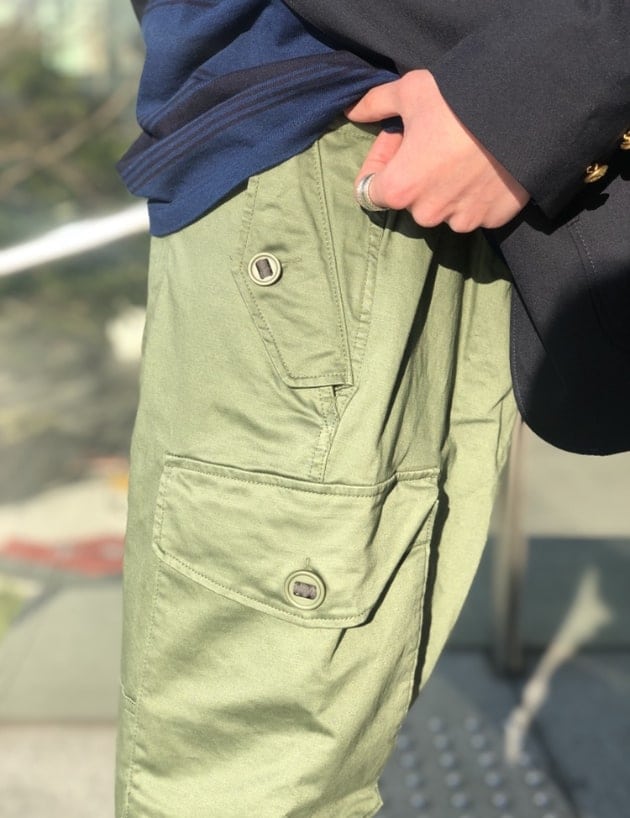 シャリ感のある風合いやドレープ感が、武骨なミリタリーの雰囲気を良い意味で中和してくれている様に感じています。