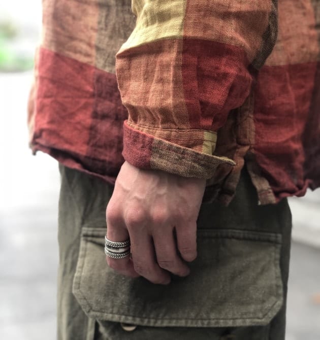 秋冬シーズンはよりブラウンの色を濃くしており、厚みのあるフランネル素材を使用している為、重厚感のあるシャツに仕上がっています。