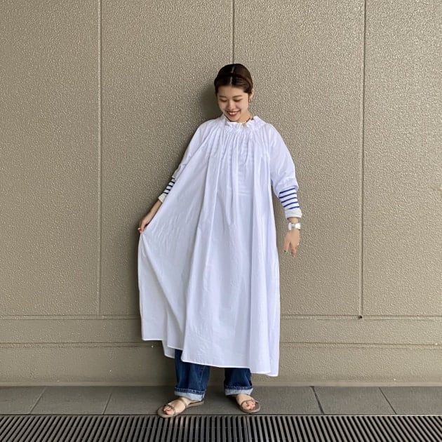 そうです!!本日まずご紹介したいのは、冒頭の写真で私がデニムの上から着用しているこちらのワンピース.