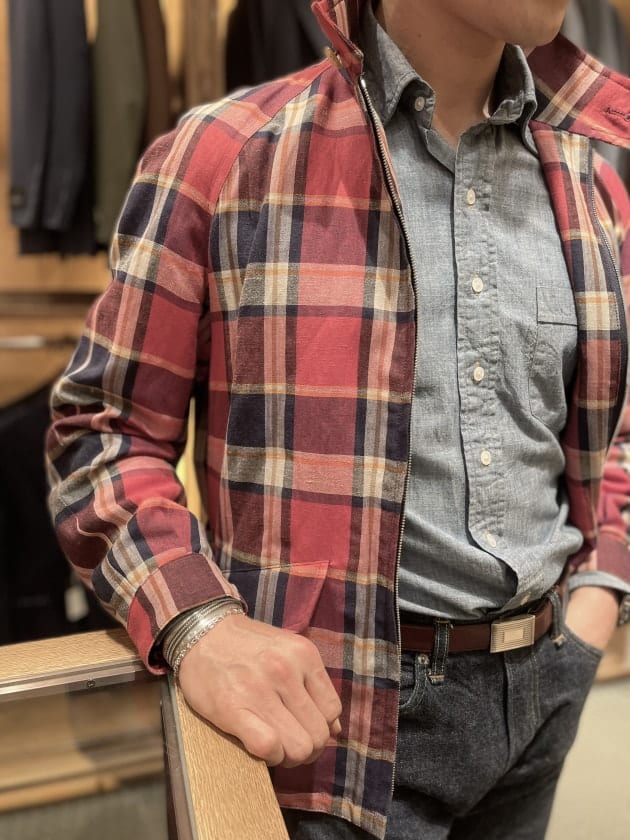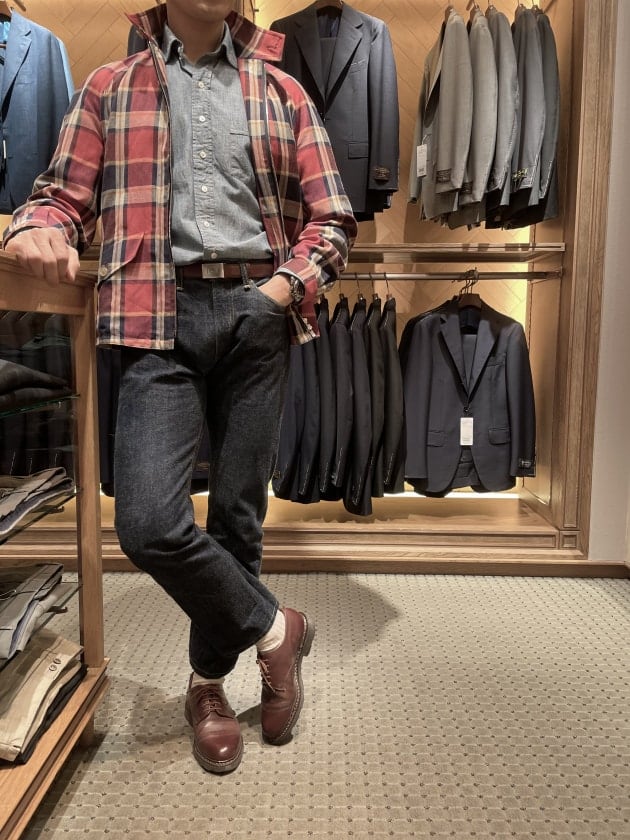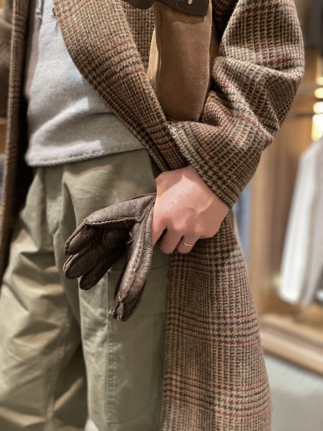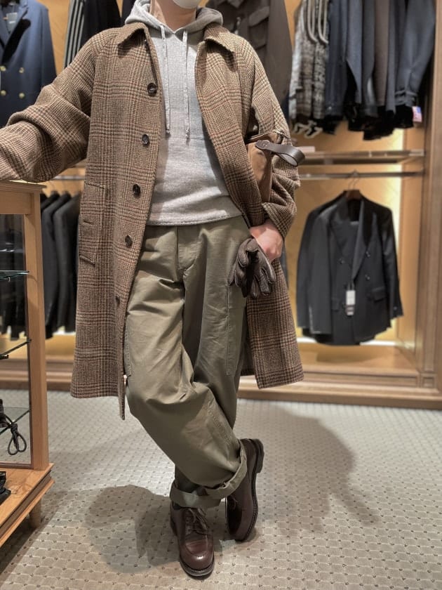 都内ご出張帰りにお立ち寄りいただきました。コートは〈GRENFELL(グレンフェル)〉。