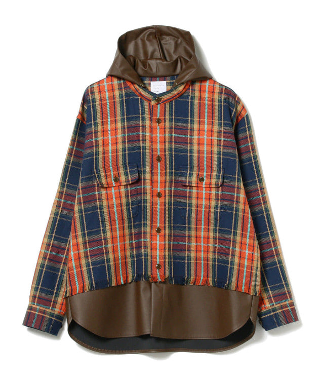 IG レイヤード チェック フーディーシャツ