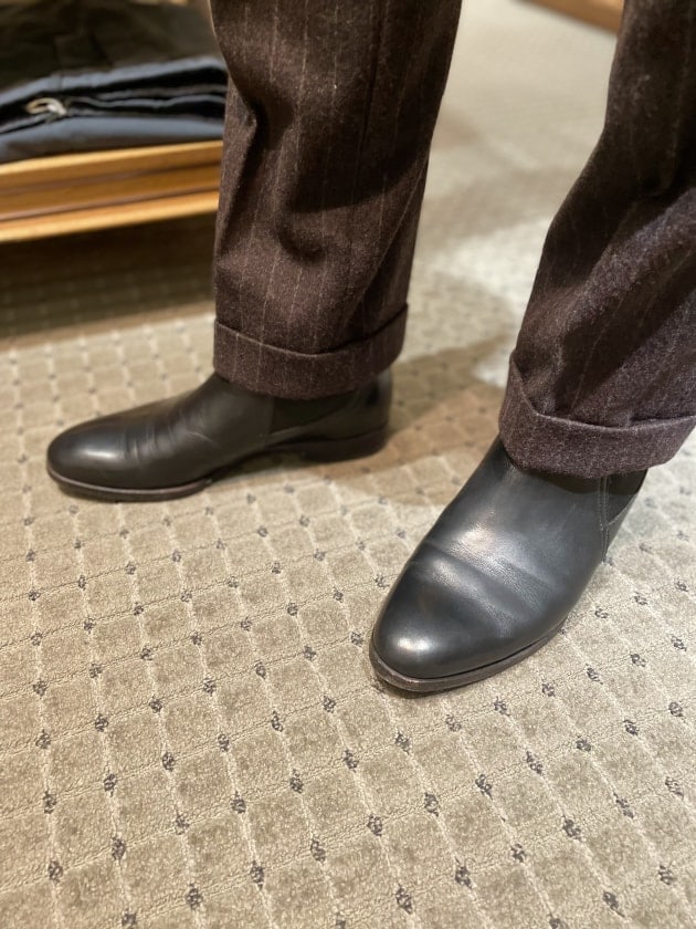 そして足元はブラックカーフのサイドゴアブーツ。このシューズの合わせもKちゃんねる様らしい。