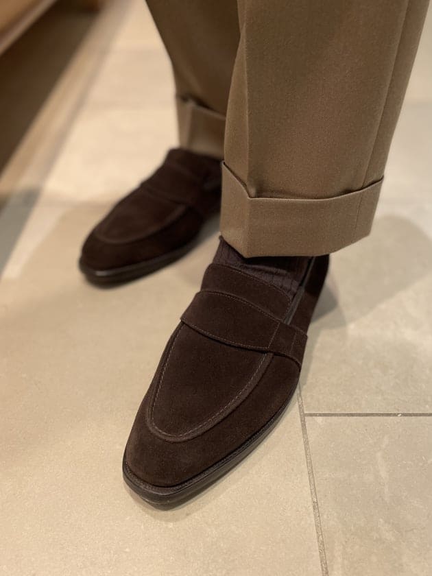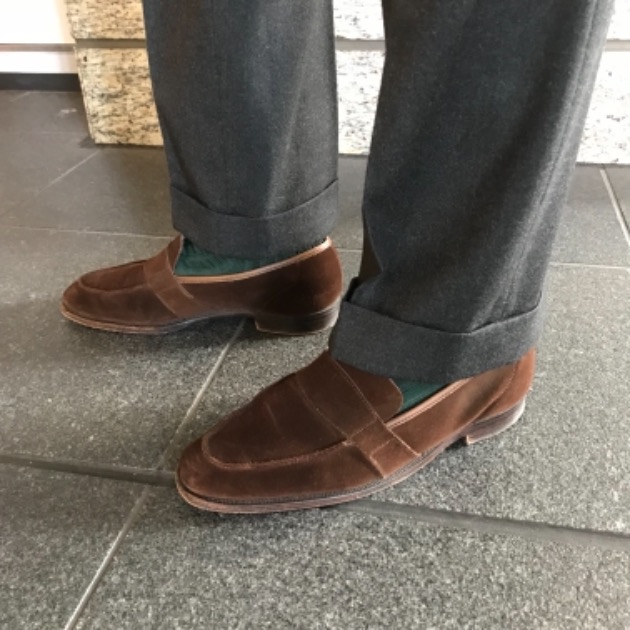 そしてシューズも随分以前にお求めの〈George Cleverley(ジョージクレバリー)〉のダービーシューズ。わたしもこの当時買っておけばよかったと悔やまれて仕方がないシューズ。