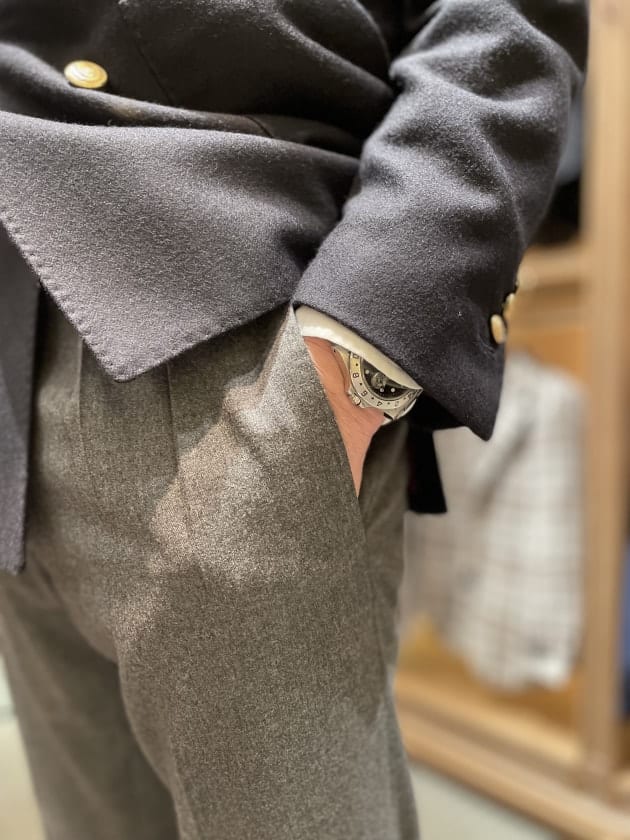トラウザーズは?も!フランスの〈BERNARD ZINS(ベルナール ザンス)〉の2プリーツサキソニー。