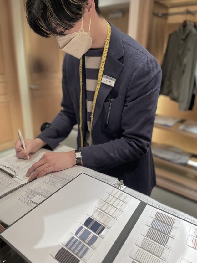 そんなT様は只今好評開催中のCUSTOM TAILOR FAIRでスーツのオーダーにご来店。初オーダーです。