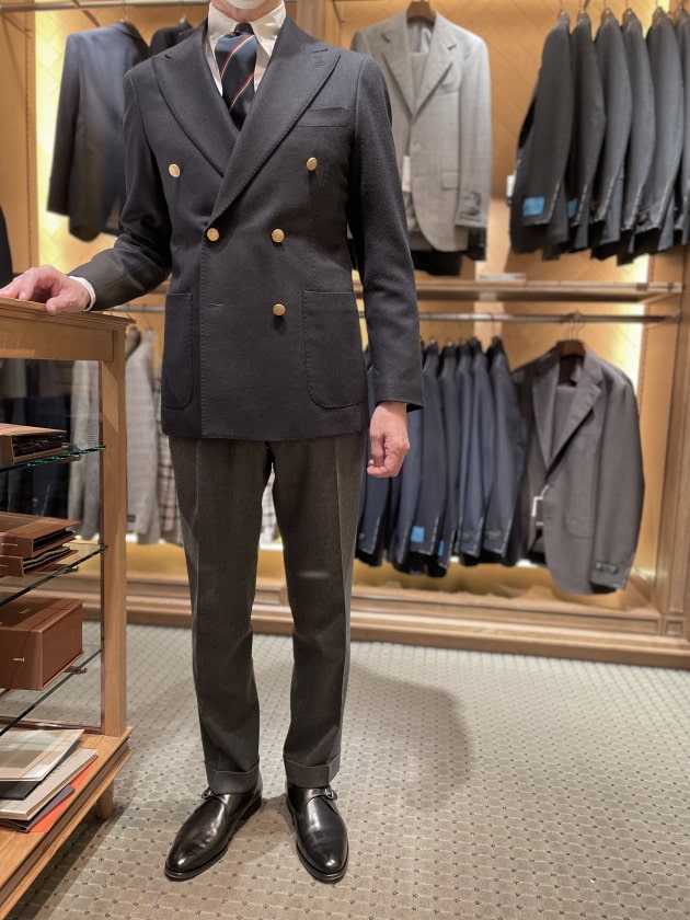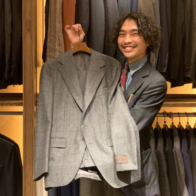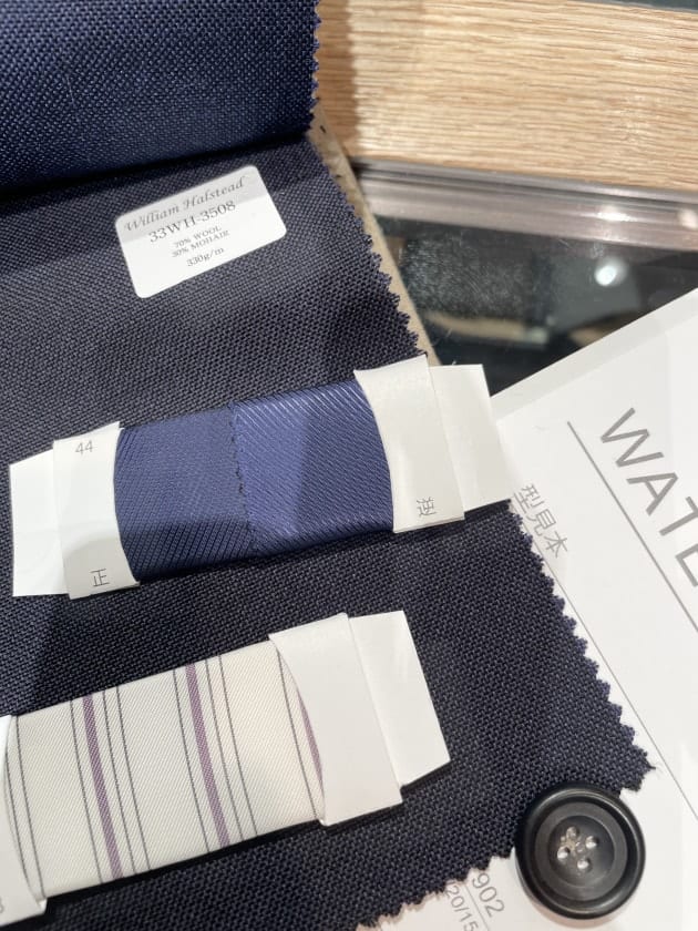 ちなみにこちらがT様のチョイス。William Halsteadのモヘア混。カラーでかなり悩まれていましたが、スガハラダイスケの提案もあり、T様に喜んでいただけました。