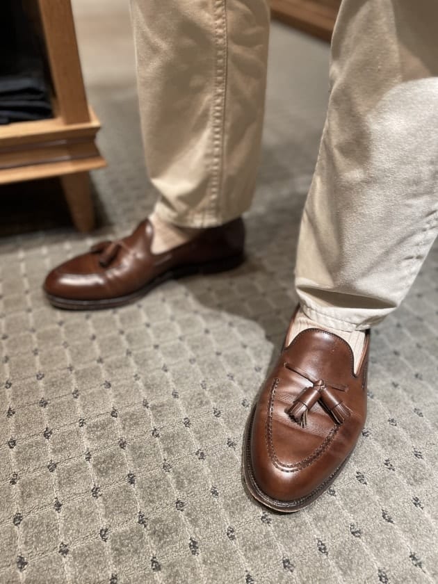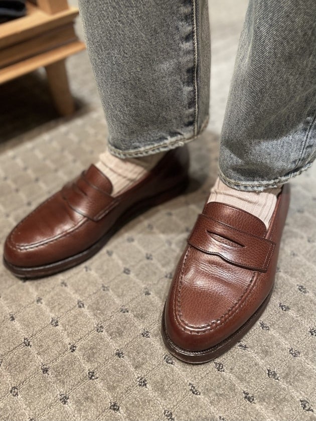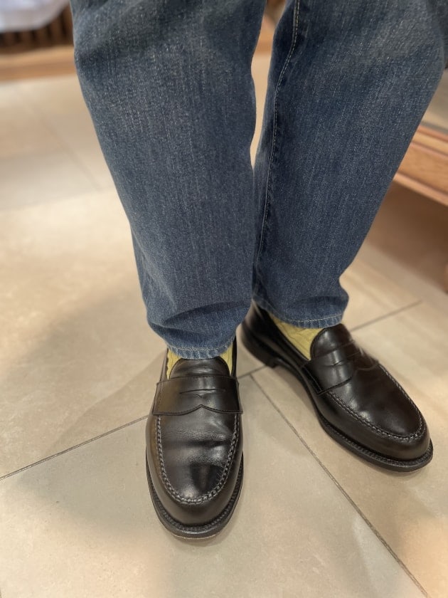 そしてこちらの足元。かなりマニアックな匂いがします。〈Church's(チャーチ)〉のバーガンディのコードヴァンストレートチップ。コーディネートが難しいシューズだと思うのですが、Y様曰く、「ダウンジャケットなんでありかな」と。きっとY様のような方が選ばれるシューズなんでしょうね。Y様のアイテムチョイスにリスペクト。
